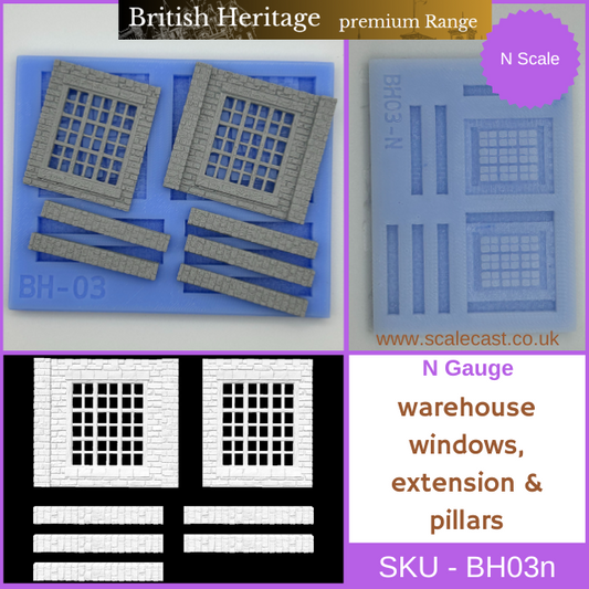 BH03n British Heritage building Warehouse windows & Ext pillars - N Gauge