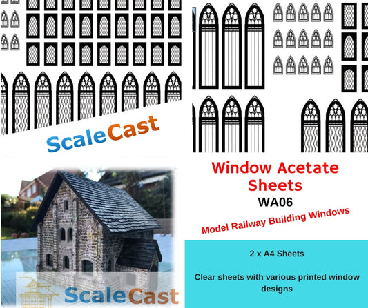WA02 Clear plastic Victorian Church windows - Model Railway Scenery
