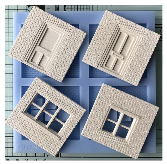 OGB03 Brick Building Doors & Windows - O Gauge - For Model Railway Scenery