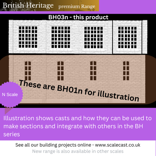 BH03n British Heritage building Warehouse windows & Ext pillars - N Gauge